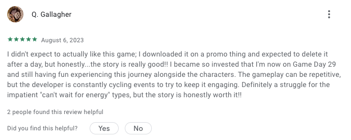 Love & Pies is incredibly popular, and player metrics show how important the narrative is. There’s 60% retention by Day 1, a whopping 20% D30 retention, and an amazing 10% retention by D120 – the top 25 per cent of mobile games only see an average retention of 4% D28!