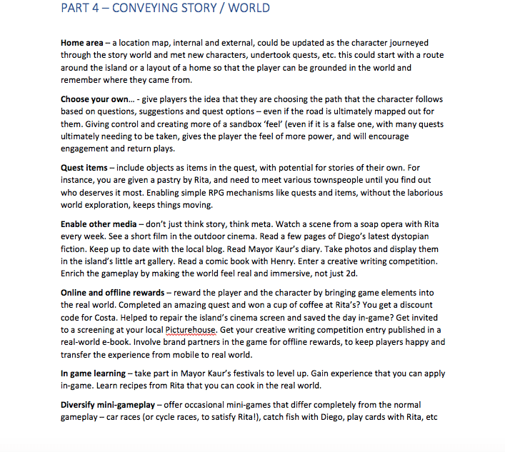 In 2018 Laura had to create a game idea for a pitch, which included creating characters, story world, storytelling methods and a brief sample script. The pitch was successful and won the contract – to create a completely different game which is now in development and due to launch end 2020.